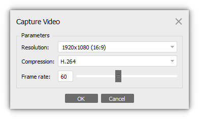 To record a video file according to the created camera track click on Capture button on the Animation pane toolbar and in the Capture Video dialog select the desired export parameters, such as export video Resolution, Compression type, and Frame rate. Click OK button to save the video in a separate file.
