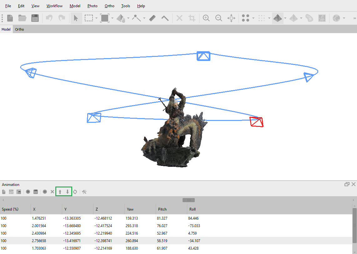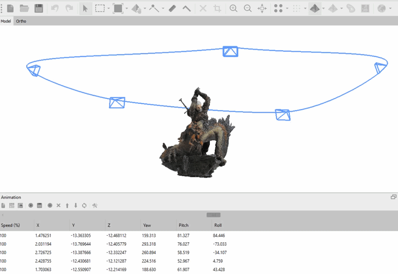 To display the camera track path, select Model > Show/Hide items > Show animation.