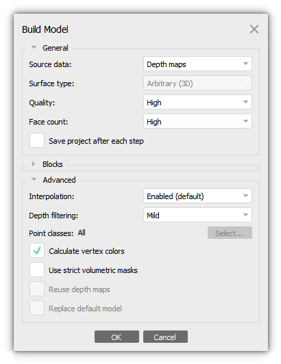 Click OK button to start building geometry. The result will be displayed in the Model view. We would also like to note that vertex colors are not a texture. To assign a texture to a model, you must additionally perform the texture building step, which is described in the next section.