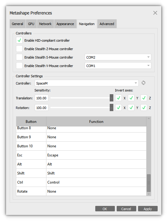 The parameters of the 3D controller can be adjusted in the Navigation preferences tab. (You can find a description of how to configure Stealth3DMouse in our tutorial - Stealth3DMouse controller).