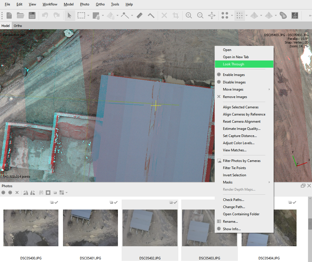 Select 2 images (stereo pair) on the Photos pane and choose Look Through command from the context menu.
