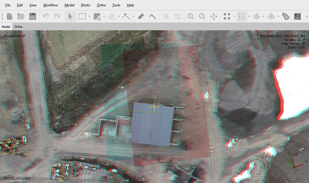 Agisoft Metashape supports simple anaglyph display mode (for red&blue glasses) as well as hardware stereo mode that assumes polarization glasses and professional-grade hardware (GPU that supports quad-buffered stereo and 3D monitor). The following working steps are described in the article: