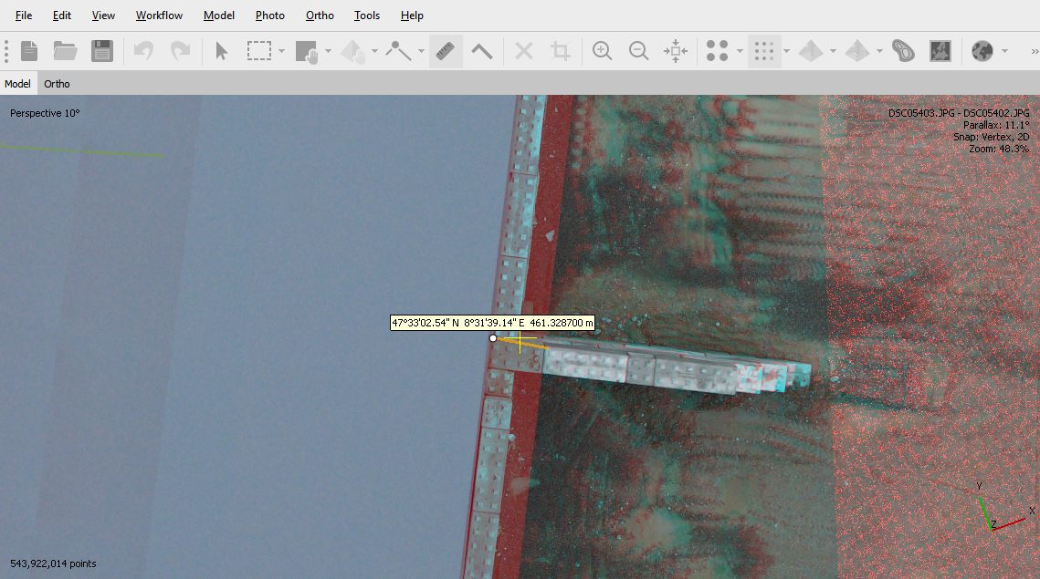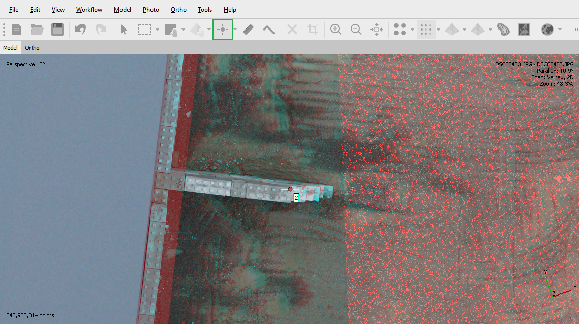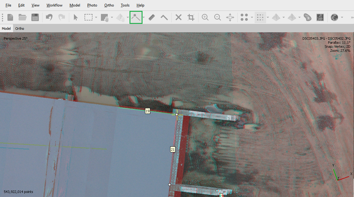 1. Navigate through overlaying stereo pair with Ctrl key pressed and right mouse button.