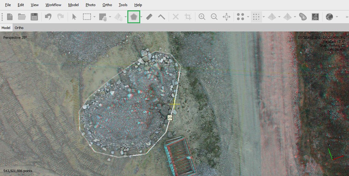 - To draw a polygon click the Draw Polygon toolbar button, left-click on the first point, then move the 3D cursor to the next point, and left-click on it. Perform a double left click to finish the polygon.