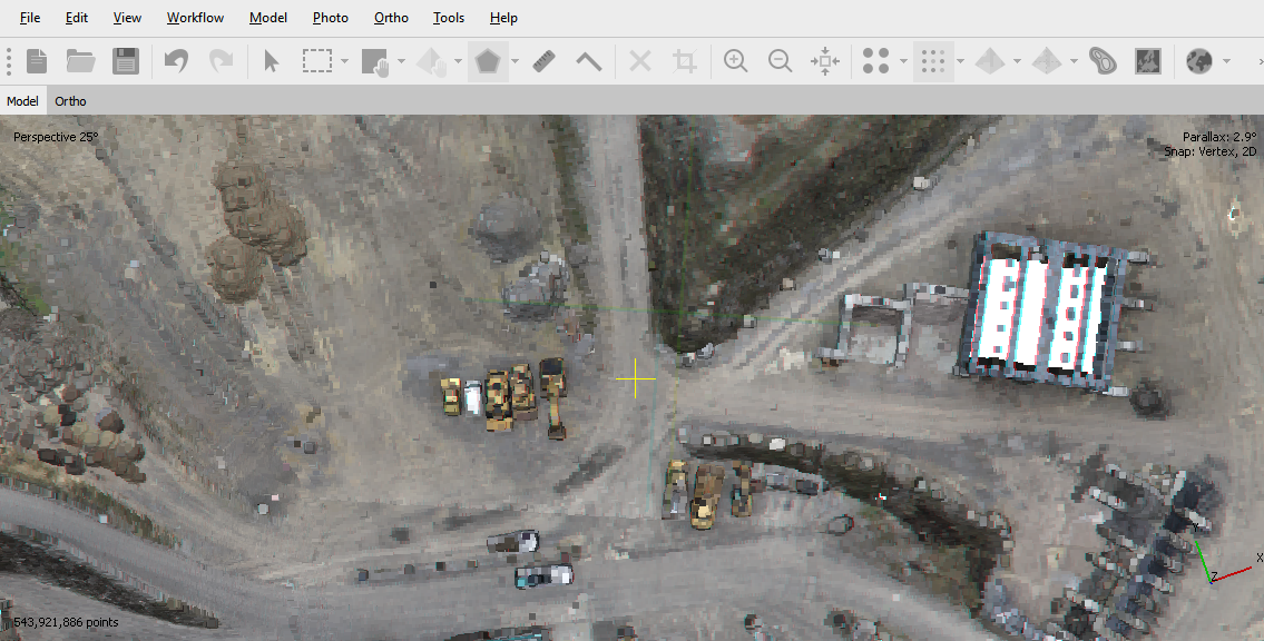 Metashape Professional offers two different navigation modes: Object navigation and Terrain navigation. Switching between the navigation modes can be performed from the Navigation Mode submenu of the Model menu (Model > Navigation Mode). Depending on the navigation mode, the corresponding steps will be used.