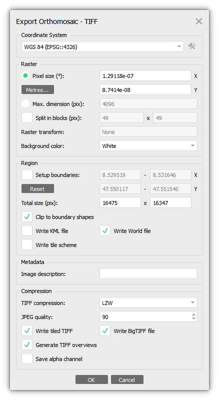- use Split in blocks feature in the Export Orthomosaic dialog in order to export the orthomosaic in tiled blocks,