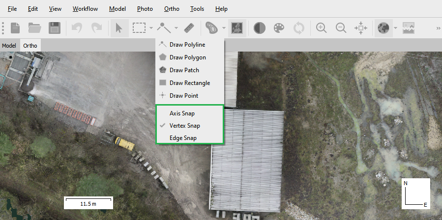 Shapes can be drawn over DEM or Orthomosaic as well as over model using instruments available on the Ortho/Model view toolbar. The Snapping tool in Metashape will help you to do vectorization. This solution describes how the snapping works in Metashape Professional version.