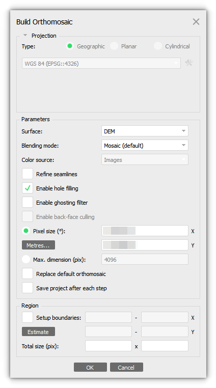 1. Select the Build Orthomosaic... command from the Workflow menu (Workflow > Build Orthomosaic...).