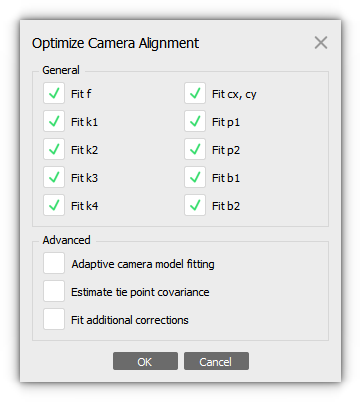 2. In the Optimize Camera Alignment dialog box, check additional camera parameters to be optimized.