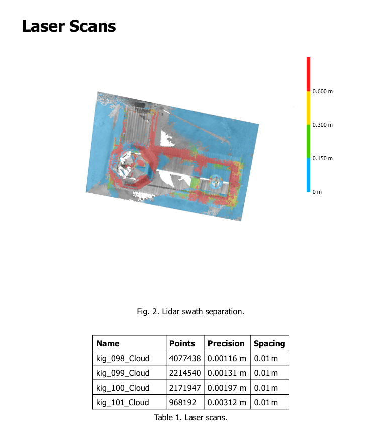 Project report includes Laser Scans page that displays general information about the laser scans in the project: