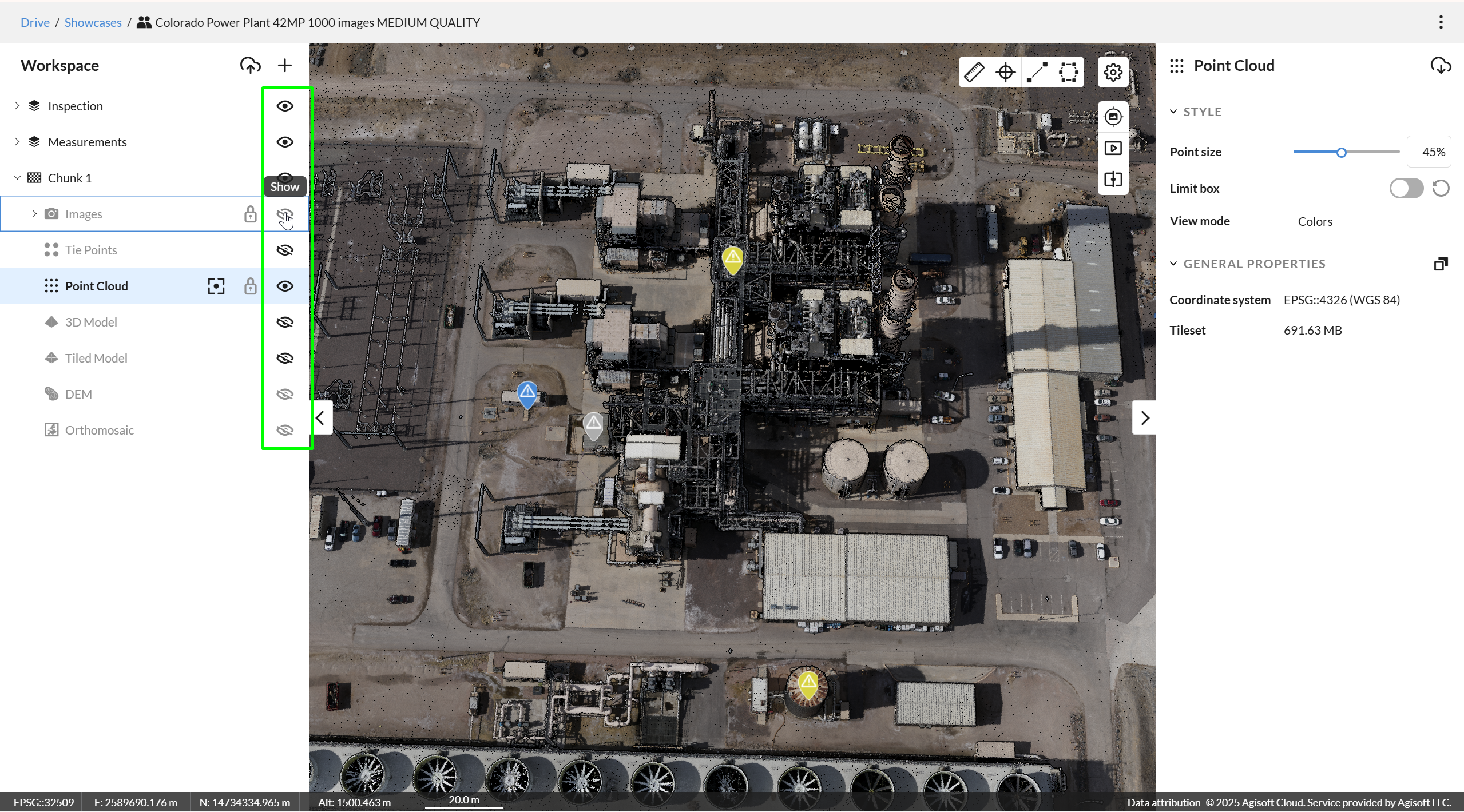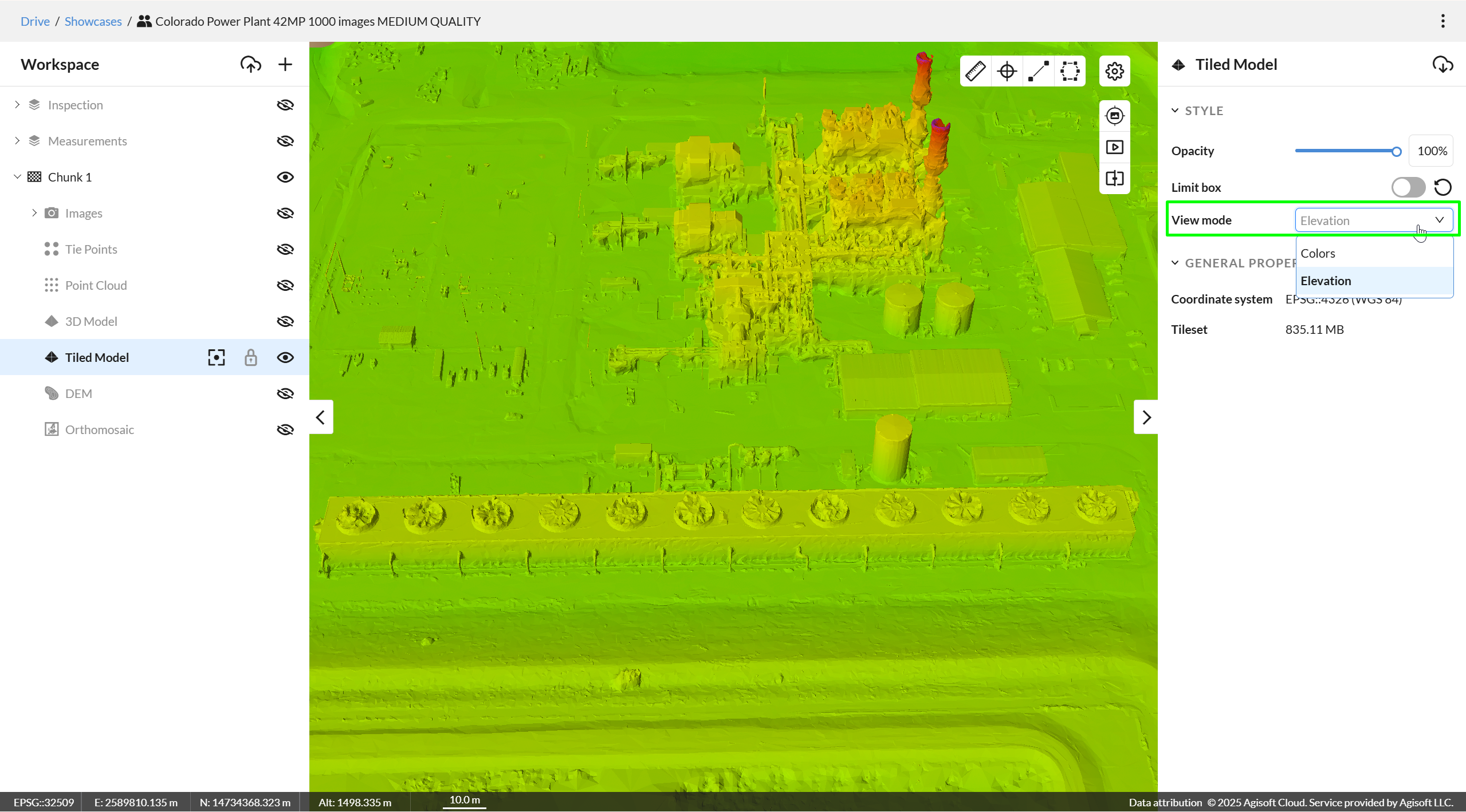 Tiled Models, 3D Models, and Point Clouds support two view modes: