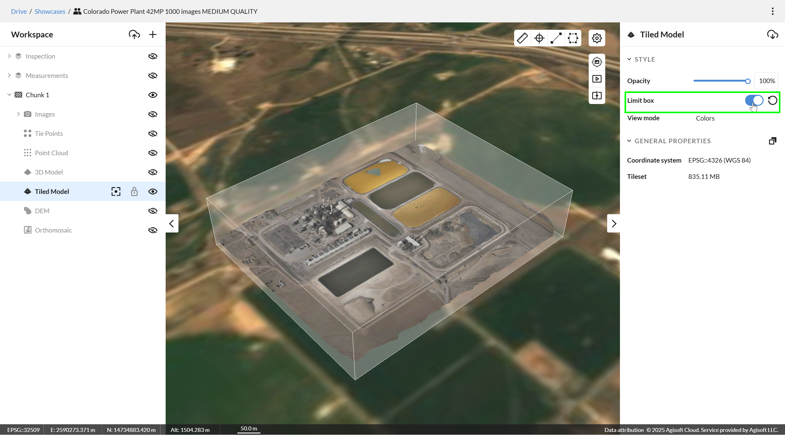 Tiled Models, 3D Models, and Point Clouds include a Limit Box feature that allows you to restrict the visible area of the data.